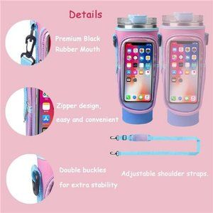 NEW! Stanley Cup Holder with Strap Water Bottle Pouch Stanley Quencher H2.0 & Adventure 40 oz Tumbler - Color: Gradient Purple!