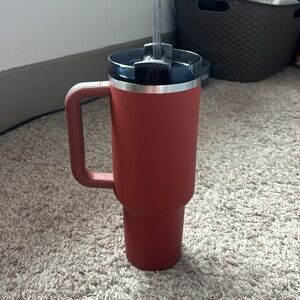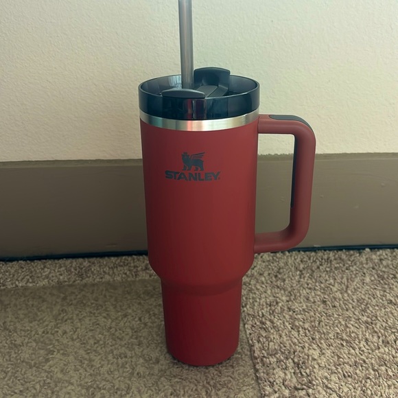 Red, matte soft Stanley cup. Not used much in good condition