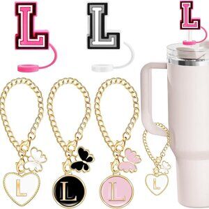 Make your tumbler stand out with this adorable Letter L Stanley Cup Accessory Set. Includes straw toppers and matching gold chain charms so you can personalize your cup in style.
