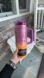 Stylish Stanley tumbler with a purple and orange design from the Dia de los muertos Stanley x DSG sold out collab!