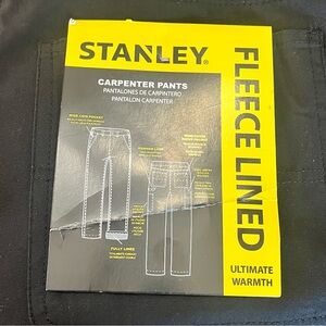 Stanley Fleeced Lined Carpenter Work Utility Pants Black Mens Size 38x32 NWT