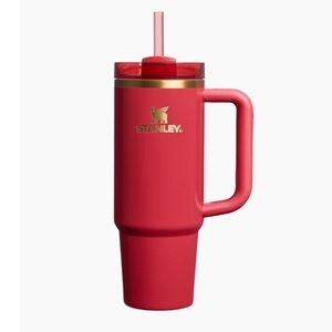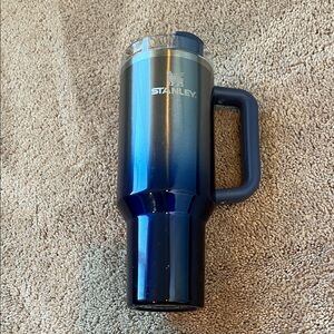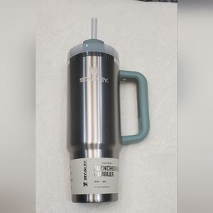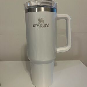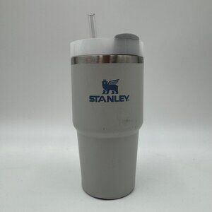Stylish Stanley tumbler with floral design. Features a sturdy handle and straw. Perfect for on-the-go hydration.