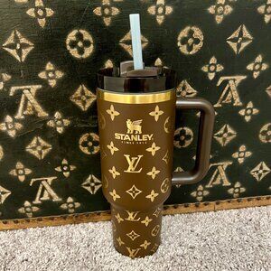 Stylish Stanley tumbler with handle. Perfect for hydration on the go.