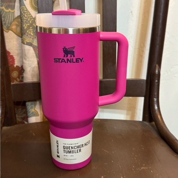 40oz Bold fuchsia Stanley tumbler with handle and straw lid. Perfect for hydration on the go. H2O Thirst quencher