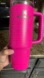 Bold fuchsia Stanley mug with sturdy handle. Ideal for travel and daily use.