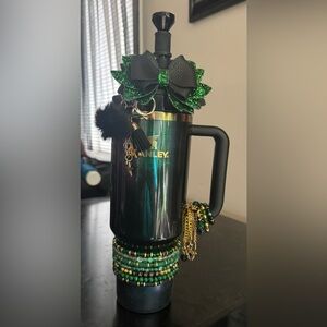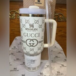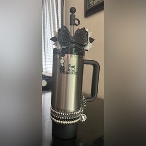 Charming Stanley mug with a playful Stitch design. Features glittery pink and blue accents.