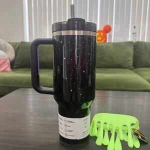 Brand new and no flaws! Comes with box. The Stanley logo glows in the dark! The viral slime silicone sleeve is included, too. I have the 40oz pink one too. Bundle to save!