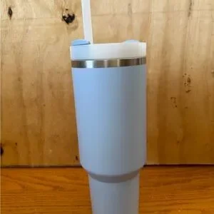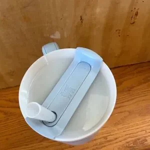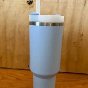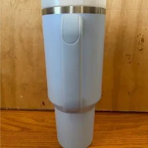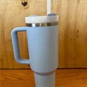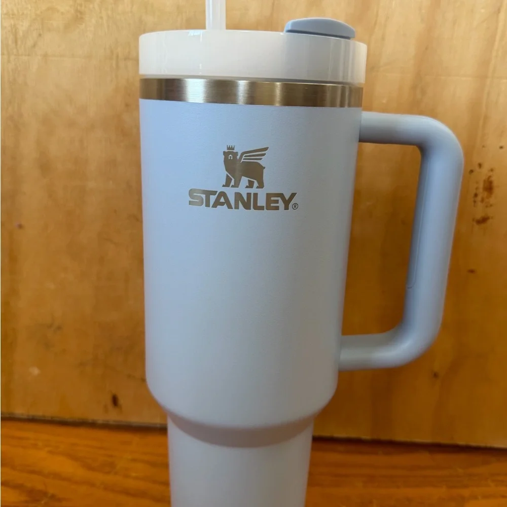 Heather Color Stanley travel mug with a convenient handle. Ideal for maintaining beverage temperature.