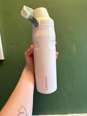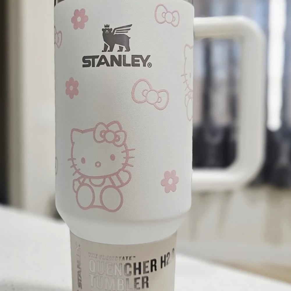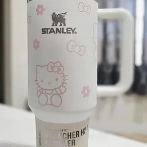 Cute Stanley tumbler featuring Hello Kitty design. Perfect for fans.