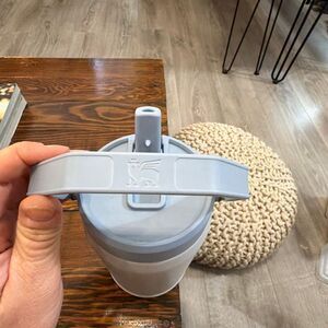 Stay hydrated in style with the Stanley ICEFLOW Flip Straw Water Jug, 40 oz capacity in a sleek white fog color. This insulated jug features double-wall vacuum insulation to keep beverages cold for up to 14 hours and iced for 2.5 days. The built-in flip straw makes sipping easy and hygienic, while the rugged handle and built-in fence hook offer convenient portability. Made with BPA-free 18/8 stainless steel and recycled plastics, it’s both durable and eco-friendly. Perfect for workouts, beach days, long practice sessions, or road trips. Dishwasher safe and designed for everyday use. Weight approx. 2 lbs. Dimensions: 5.5 L x 5.4 W x 8.6 H inches.