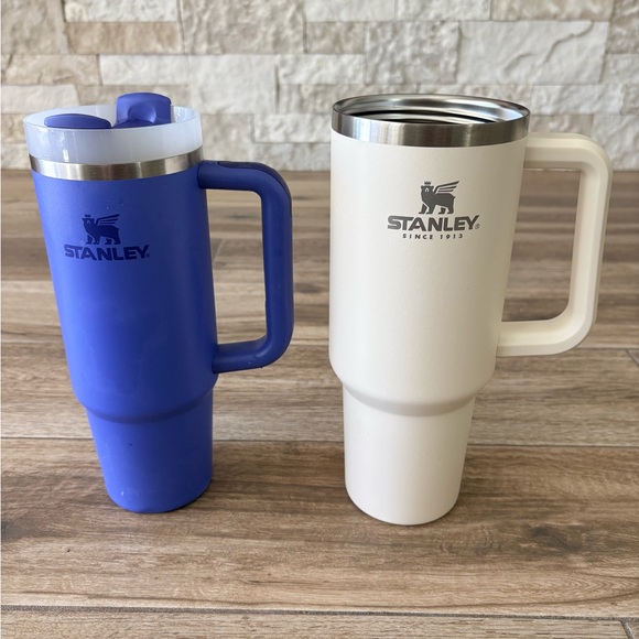 Stanley Iris Blue Water Bottle 30oz & Stanley Cream 40oz bundle of 2