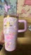 Elegant lavender mug with floral pattern. Comes with a matching straw.