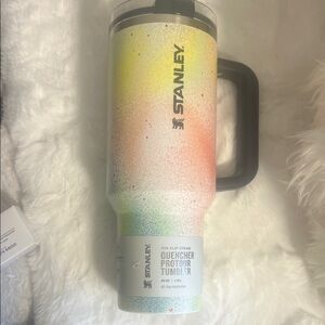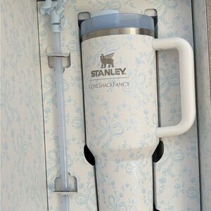 Elegant Stanley tumbler with a lavender floral pattern. Ideal for on-the-go hydration.