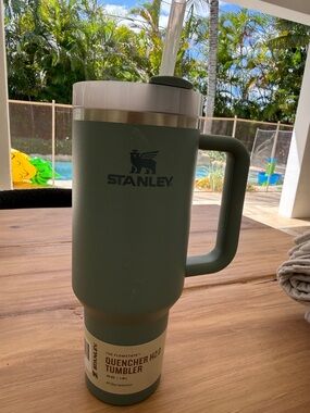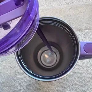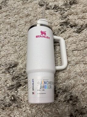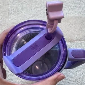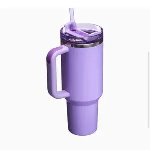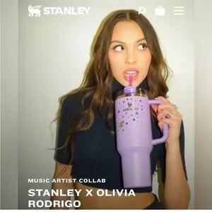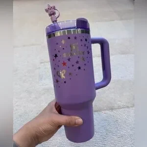 Tall lavender Stanley tumbler with handle and straw. Gently used approximately 10 times. Purchased new. Stars across the front. Olivia Rodrigo collab, but you can also just use this if you love purple. Keep drinks cold or hot! Gold star accents and small logo detail. Comfortable handle for easy grip. Straw lid for sip-friendly use. Can easily replace the straw for a new one or stainless steel straw. Enjoy!