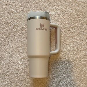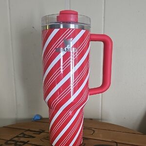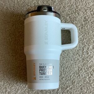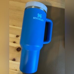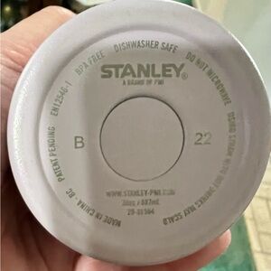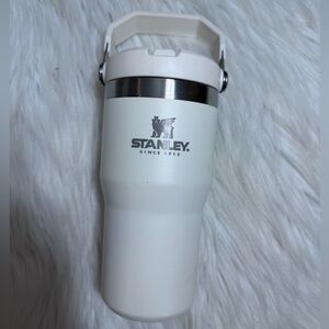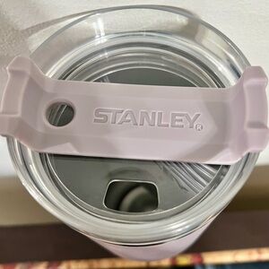 Stanley tumbler features a clear lid and silver accents. In great condition-always hand washed but IS top rack dishwasher safe. Pet and smoke free home.