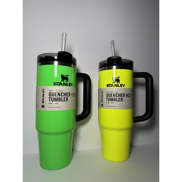 Stanley Limited Edition GREEN and YELLOW NEON 30oz Quencher Tumbler Set BNWT