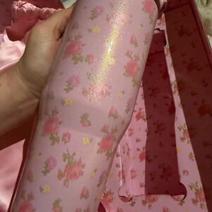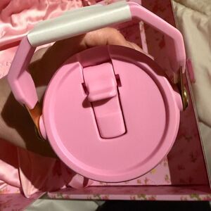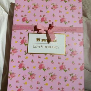 Charming Stanley tumbler featuring a pink floral pattern. Includes a coordinating satin bag.
