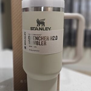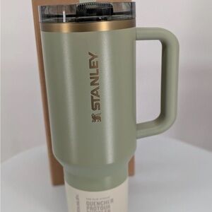 Trio of Stanley mugs in gentle tones. Features soft purple, cream, and light blue. Ideal for travel and daily use.