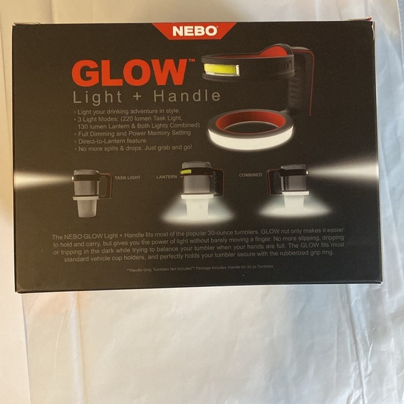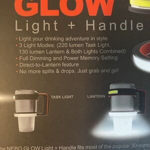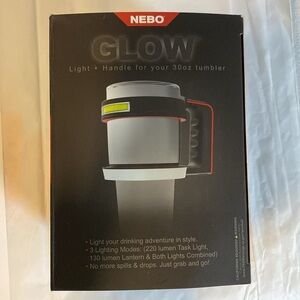 Stanley Nebo Glow light and handle for your drink tumbler. Approximately 5” x5”, see pictures for details.