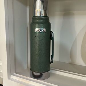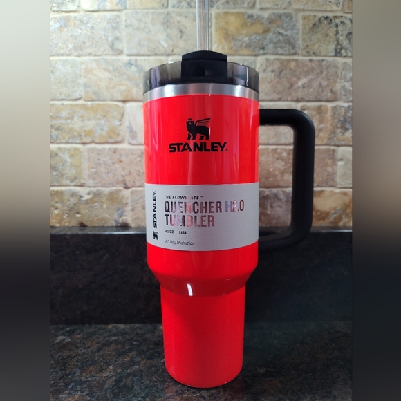Bold orange Stanley mug with a convenient handle and straw lid.