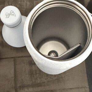 Charming pastel blue bottle with floral design. Ideal for chic hydration.