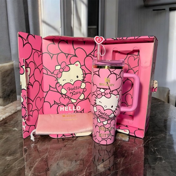Stanley Pink Hello Kitty Tumbler with Heart Straw
