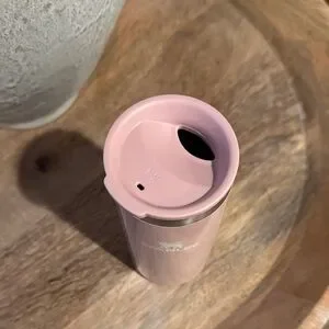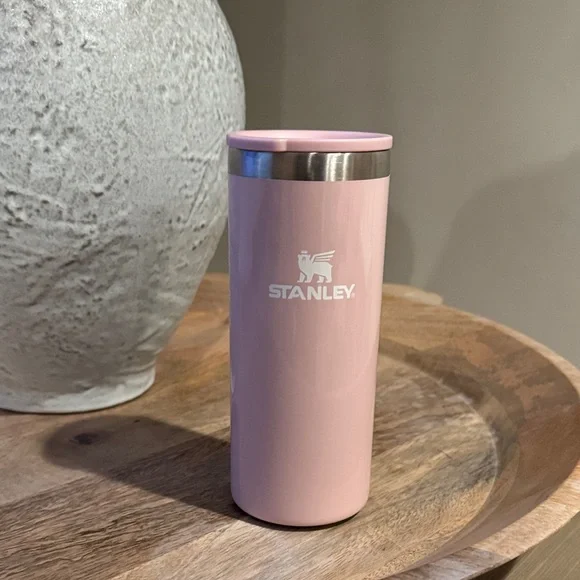 Stylish Stanley mug in soft pink with silver detail. Perfect for on-the-go beverages. Never used