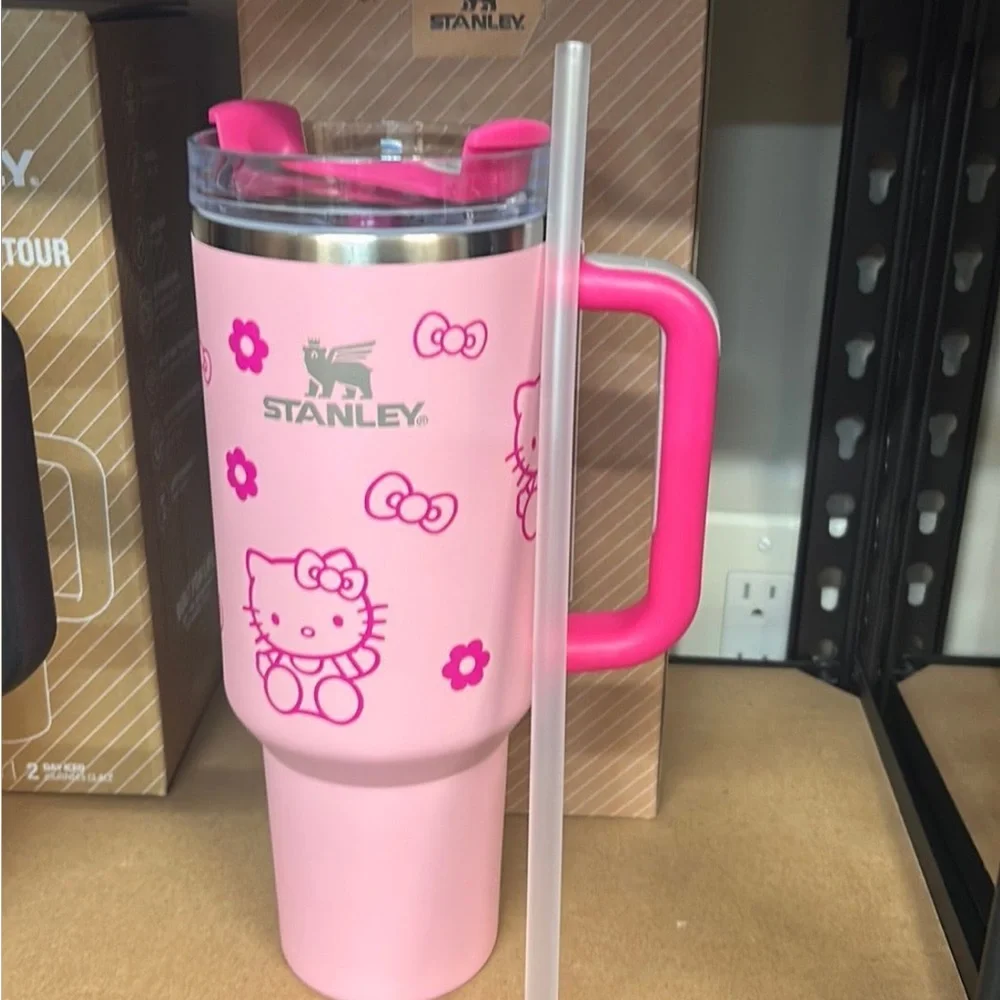 Stanley Pink Tumbler with Hello Kitty and Straw 40oz
