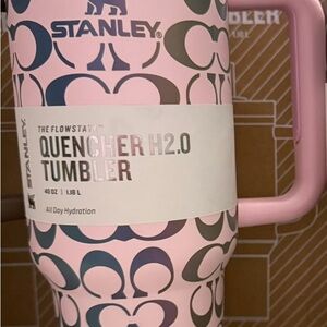Stylish Stanley tumbler with a pink and blue pattern. Perfect for daily hydration.
