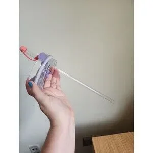 Comes with straw and a bright-colored straw cover/lid.