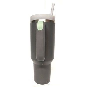 Stanley Quencher Charcoal / Mint 40oz Quencher H2.0 Tumbler DETAILS Quenchers 90% recycled 18/8 stainless steel, BPA-free Recycled stainless steel icon inside the tumbler indicates your Quencher is made from sustainable materials Double-wall vacuum insulation Soft Matte finish FlowState screw-on 3-position lid Reusable straw Comfort-grip handle Car cup holder compatible (base diameter: 3.1 inches) Dishwasher safe, hand wash recommended Weight: 1.4 lb. Dimensions: 3.86L x 5.82W x 12.3H in