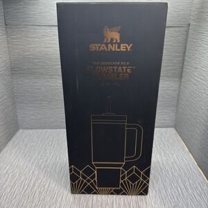Brand new Stanley Quencher H2.0 FlowState tumbler from the Deco Collection in a striking Black Gloss finish with gold accents. This 40oz insulated tumbler features Stanley's popular FlowState rotating lid, reusable straw, and a sturdy handle for easy everyday use.