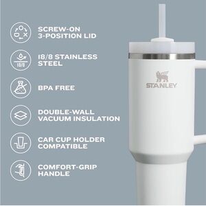 ADVANCED LID CONSTRUCTION: Whether you prefer small sips or maximum thirst quenching, Stanley has developed an advanced FlowState lid, featuring a rotating cover with three positions: a straw opening designed to resist splashes with a seal that holds the reusable straw in place, a drink opening, and a full-cover top for added leak resistance. We’ve also included an ergonomic, comfort-grip handle, so you can easily carry your ice-cold water to work, meetings, the gym or trips out of town.