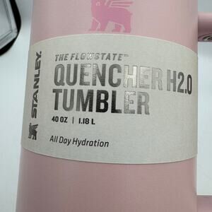 Stay stylish and hydrated with this Stanley Quencher H2.0 Flowstate Tumbler in the limited edition Cherry Blossom Pink color. This 40 oz insulated tumbler keeps drinks cold for 11 hours, iced for 2 days, and hot for up to 7 hours. It features a 3-position lid, splash-proof design, BPA-free construction, and a stainless steel body. The ergonomic handle and included reusable straw make it perfect for daily use.