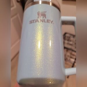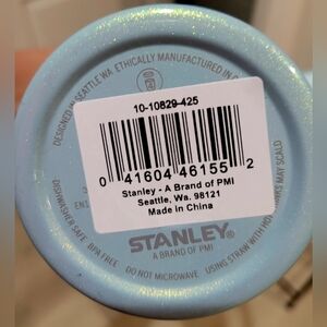 Stylish Stanley tumbler in soft blue. Perfect for hydration on the go.