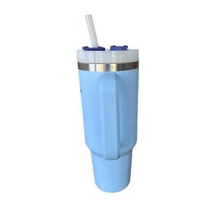 The Stanley Quencher H2.O FlowState Tumbler Mug in Cornflower Blue is a 40oz stainless steel tumbler with a screw-on lid, designed for both hot and cold beverages. It features a comfortable handle and is insulated to keep drinks at the desired temperature. This tumbler also comes with a matching straw, making it convenient for on-the-go hydration. With the Stanley brand known for quality and durability, this tumbler is a reliable choice for personal use or outdoor activities like camping and hiking.