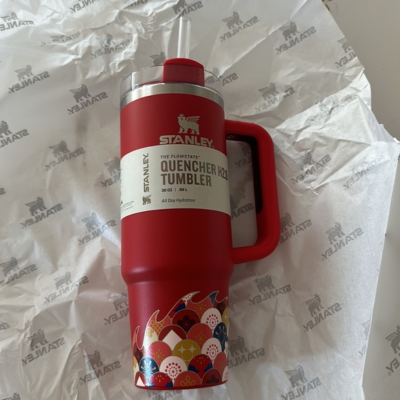 Stanley Quencher in limited edition Red Dragon Lunar New Year color water cup tumbler with straw and handle. 30 oz size. Shop with confidence: proof of purchase from retailer available upon request. Brand new with tags in box.