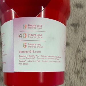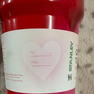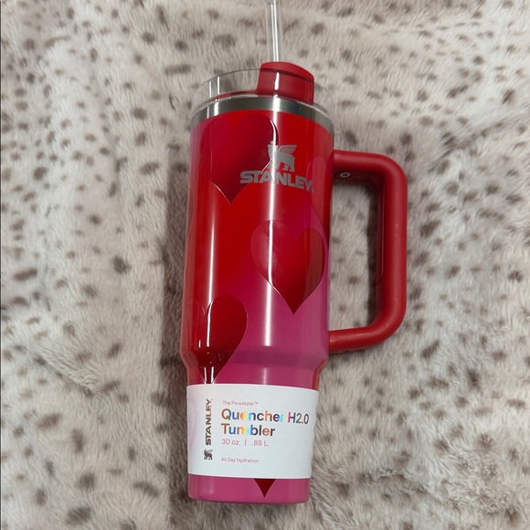 Stylish Stanley tumbler with heart design. Perfect for hydration on the go. Durable and vibrant.