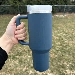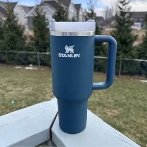 Details: Introducing the Stanley Quencher H2.0 Soft Matte Collection in the capacity of 40 oz. This tumbler is perfect for all occasions and comes in a stylish dark blue color with a Stormy Sea theme. The tumbler is constructed of 90% recycled BPA-free stainless steel for sustainable use. The advanced lid construction allows for both small sips and maximum thirst quenching, making it perfect for adults on-the-go. The tumbler comes with a drink-through lid for easy sipping. The double-walled design ensures that your drinks stay hot or cold for hours. This collection is dishwasher safe, spending less time hunched over the sink and more time doing the things you love. As noted and shown in pictures, there is wear on the bottom