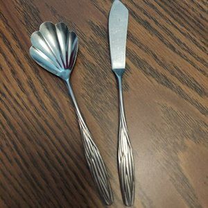 Stanley Roberts Stainless Master Butter Knife and Shell Sugar Spoon Japan VTG