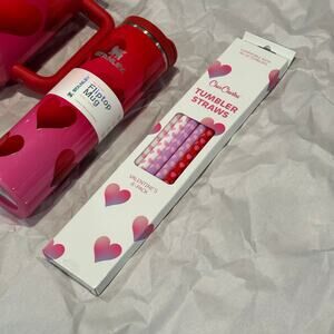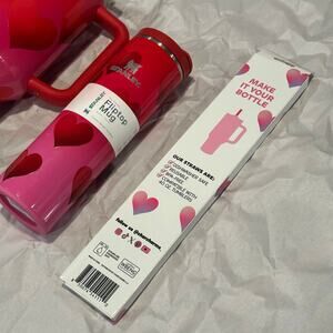 This Valentine’s Day bundle includes a Stanley 40 oz Stainless Steel H2.0 FlowState Quencher Tumbler in the Rouge Heart Gradient colorway, a Stanley 16 oz Stainless Steel Aero Light Transit Bottle in matching Rouge Heart Gradient, and Charcharms Valentine’s Day Hearts Tumbler Straws made for 40 oz Stanley tumblers. Featuring heart designs and romantic red tones, this set is perfect as a Valentine’s gift, couples gift, or gift for her. Ideal for Stanley collectors and everyday hydration. All items included as shown—please review photos for condition.