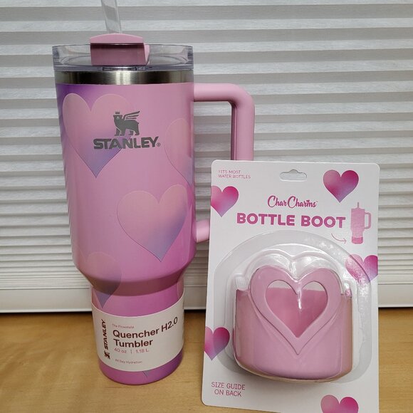 Stanley Target Valentine Tumbler Bundle, 40 Oz Pink Hearts & Bottle Boot