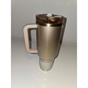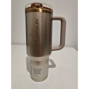The Stanley The Cheers Quencher H2.0 Flowstate Tumbler in Prosecco Shimmer, 40oz is a luxurious stainless steel tumbler with a twist lid for both hot and cold beverages. With a Christmas theme and a shiny gold color, this tumbler is perfect for enjoying your favorite drinks in style. The 40oz capacity ensures you can have multiple servings, making it a convenient and elegant choice for anywhere from the kitchen to the bar.