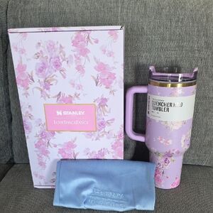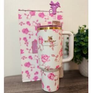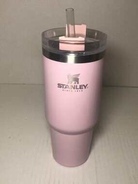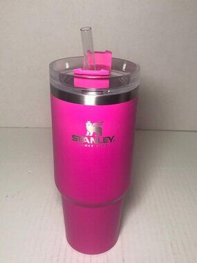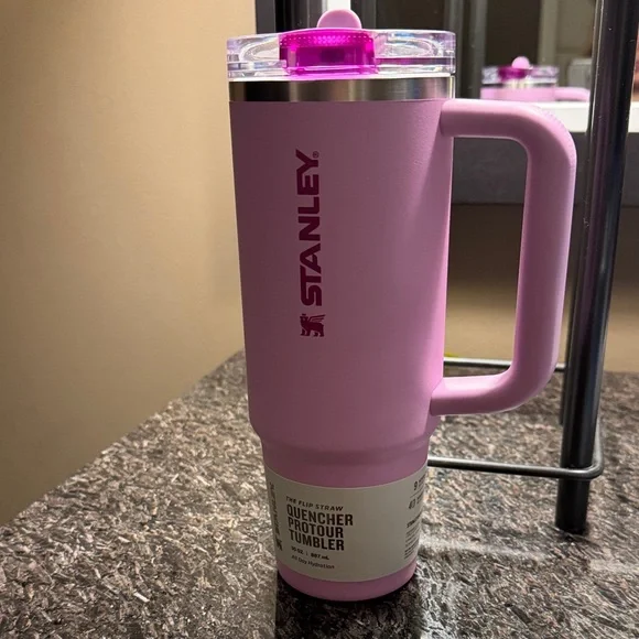 Durable insulated travel tumbler by Stanley. Bright pink exterior with matching handle and lid. Clear flip straw lid for easy sipping. Sleek branded design for everyday use. New with tags! Beautiful Soft Orchid color. 30oz.
