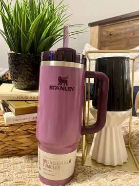 Insulated travel tumbler by Stanley. Matte pink exterior with matching handle. Clear pink flip straw lid. Stanley logo printed on the side. New with tags! 30oz. Beautiful Soft Orchid color.