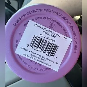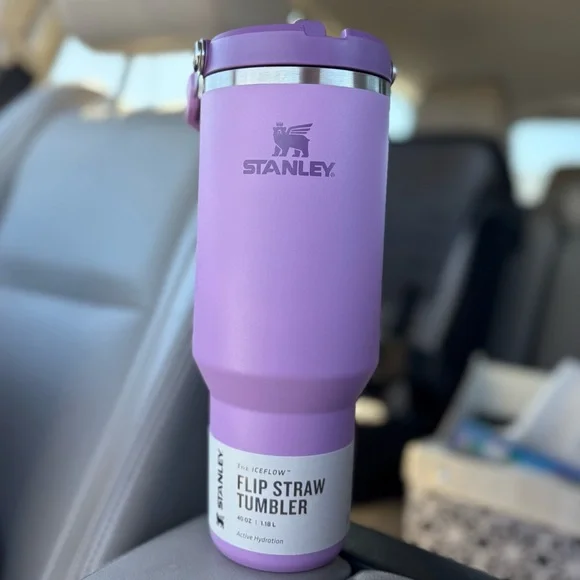 Beautiful Lilac color 40oz stanley! Has a flip top straw and easy carry handle. NWT! Tiny mark on the back of the tumbler, shown in photo.