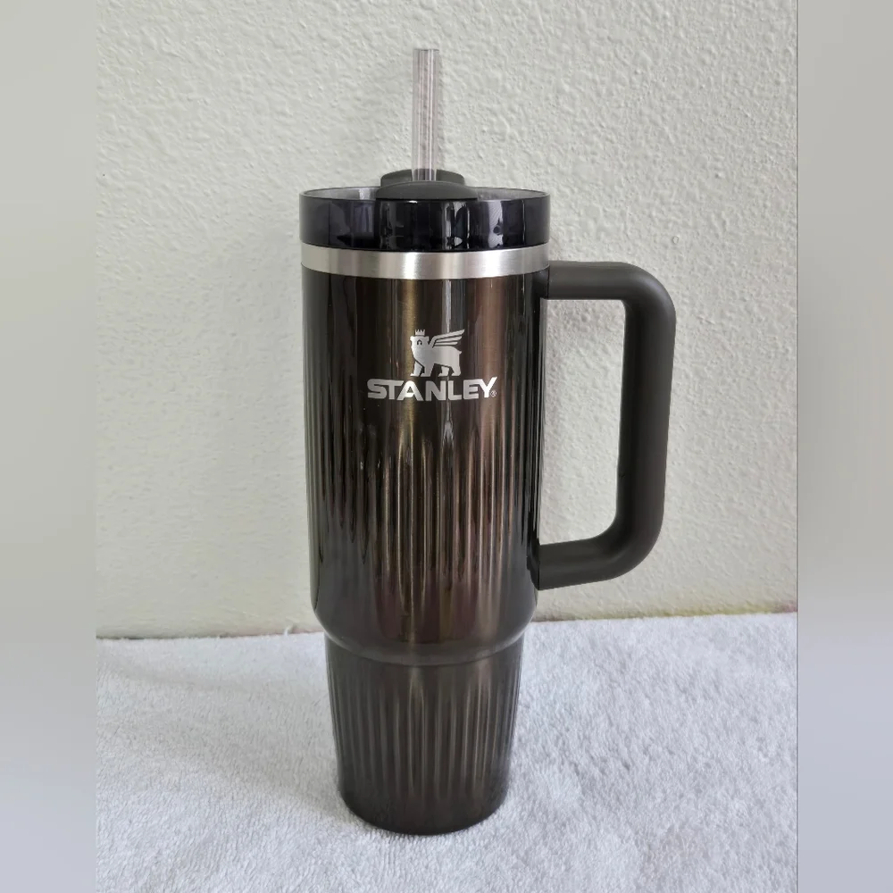 Stanley The Quencher Fluted Texture Tumbler Brown Silver Trim 30oz