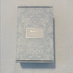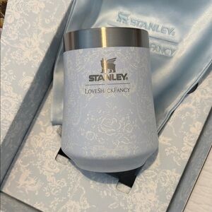 Chic light blue tumbler with floral design. Features Stanley branding. Ideal for beverages.