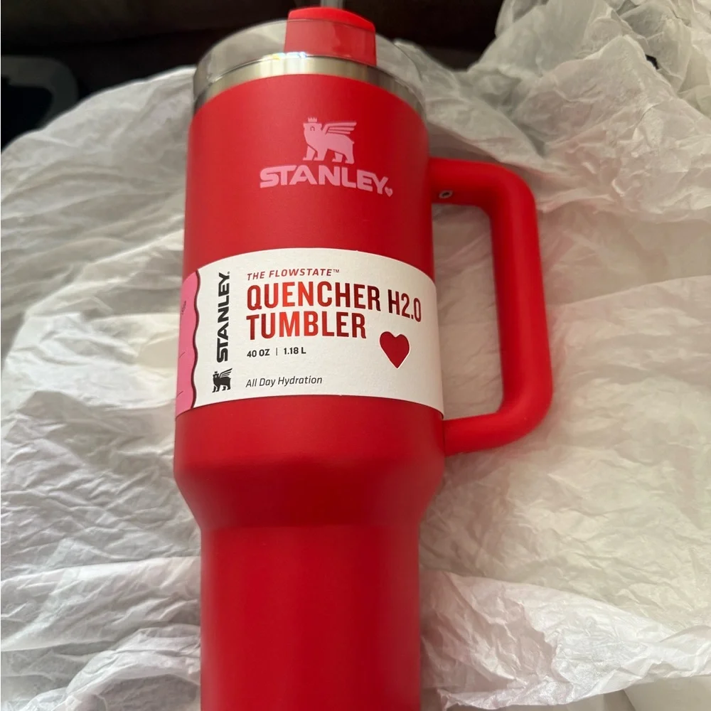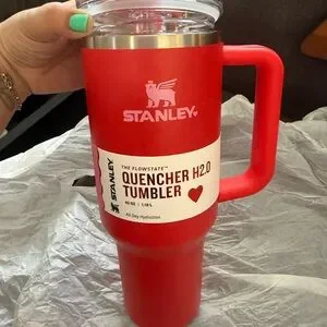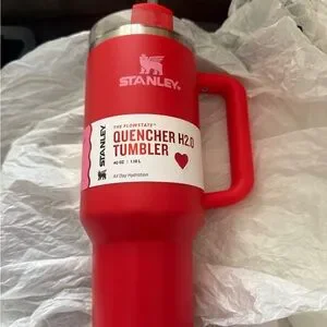 Stanley Quencher H2.0 Tumbler in vibrant red. Durable stainless construction with a comfortable handle for easy carrying. Designed for all-day hydration and reliable temperature retention. Bright red finish stands out and is easy to spot.