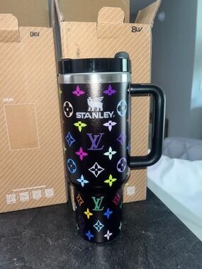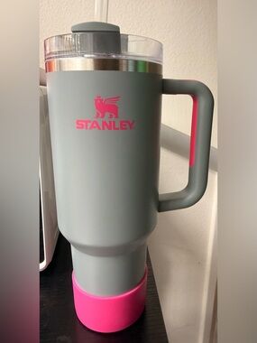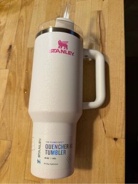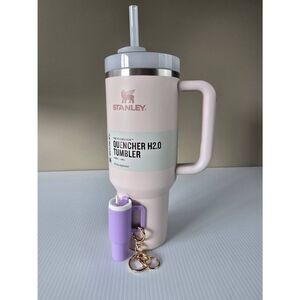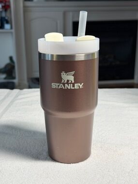 Insulated Stanley tumbler with decorative stripe detail. Flip straw lid for easy sipping. Durable stainless accents and branded logo. Clean, modern styling for everyday use.